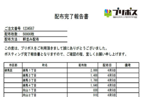 ポスティング完了後は、「配布完了報告書」をお送りします!